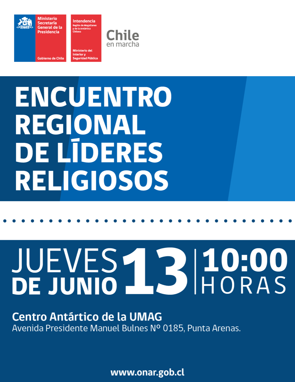 La Oficina Nacional de Asuntos Religiosos (Ministerio Secretaria General de la Presidencia) invita a participar en las actividades a realizar esta semana en la región de Magallanes los días jueves y viernes en Punta Arenas.