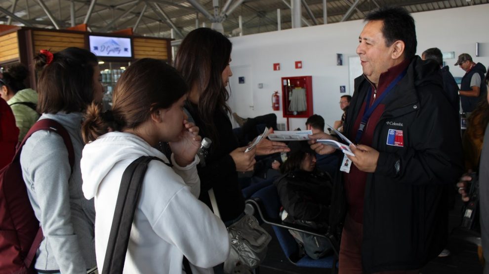 Con la entrega de material informativo a pasajeros del Aeropuerto Carlos Ibáñez del Campo de Punta Arenas, el sector de salud Magallanes con apoyo de la Dirección General de Aeronáutica Civil (DGAC), prosiguieron en terreno con el Plan de Acción del Nuevo Coronavirus o Covid-19.